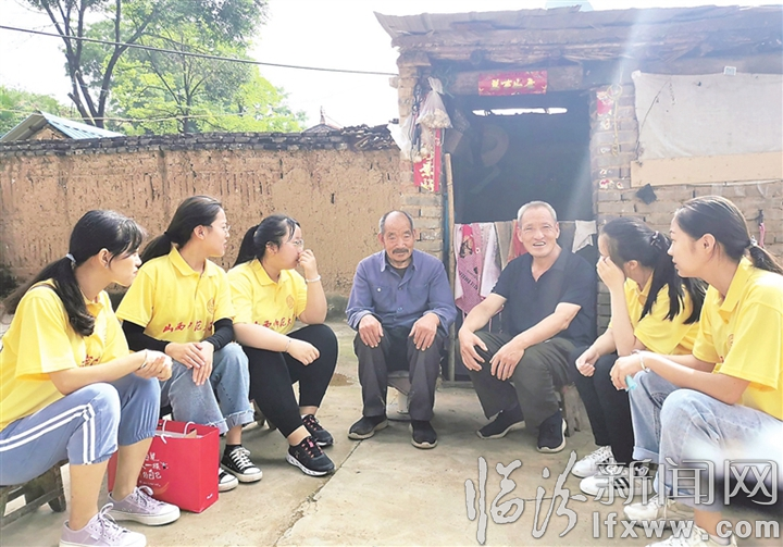 臨汾新聞網訊 7月18日,山西師大教育科學學院“聚星燃夢”紅色尋訪社會實踐隊第一分隊,來到長治市平順縣西溝村開啟了紅色尋訪之旅。通過講解員的講述,隊員們了解到全國勞模李順達、申紀蘭帶領西溝人民艱苦奮斗的歷程,并立志以“改革創新”的銳氣和“攻堅克難”的勇氣,積極為學校、為社會創造更大的價值。 圖為隊員們探訪孤寡老人,聆聽西溝村的歷史故事。