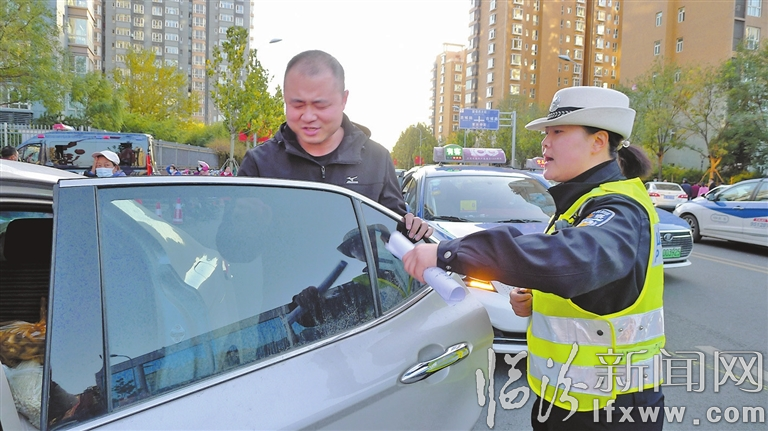 有人逆行,崔瓊慧立刻勸返;有人不戴頭盔,她耐心宣傳教育;有人隨意停放車輛,她予以警告并令其立即駛離;有人闖紅燈,她一個箭步上去,及時阻止……沿著解放西路、鼓樓西大街、中大街、濱河東路一路下來,同樣的話語,她每天不知道要重復多少遍。