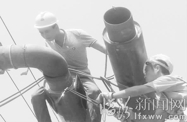 8月4日10時,我市氣溫達到35℃。在北孝社區附近的施工現場,許多工人在離地面三四米的高架上對供暖管道進行焊接。焊工張勇杰說,剛開始爬高作業還有點害怕,這幾個月下來,每天都要爬上五六次高架,已經習慣了。