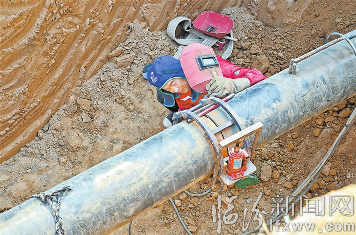 深約兩米的地坑中,一條黝黑的燃氣管線橫臥坑底、伸向遠處。現場,一臺挖掘機正揮舞著挖斗拓寬管坑,一名焊工躺在坑底緊張焊接,兩名工人正手持鐵鍬揮汗如雨,施工管理員守在現場、寸步不離……