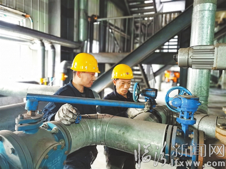 汾西縣堯舜馗熱力公司工作人員正在檢查管網,該公司投資1740萬元對燃煤鍋爐污染防治設施進行了提標改造,穩定實現了超低排放。 記者 攝