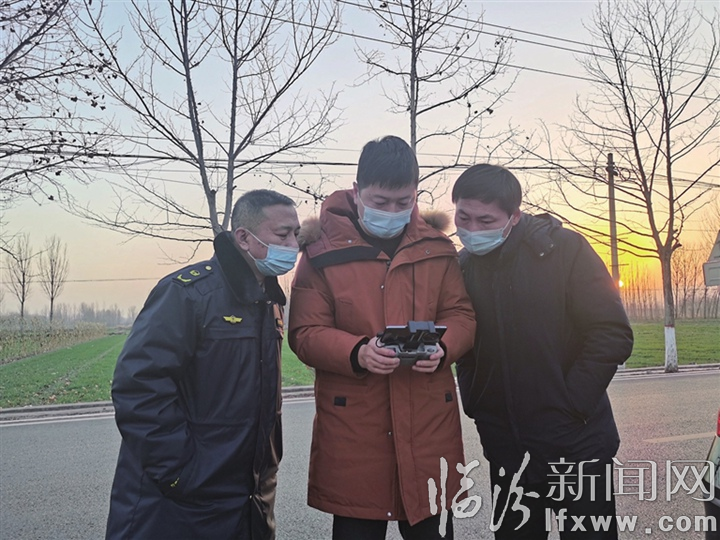 12月14日傍晚,堯都區金殿鎮蘭村的村口空地處,在執法人員的操作下,一架無人機穩穩升空,向村莊上方飛去。