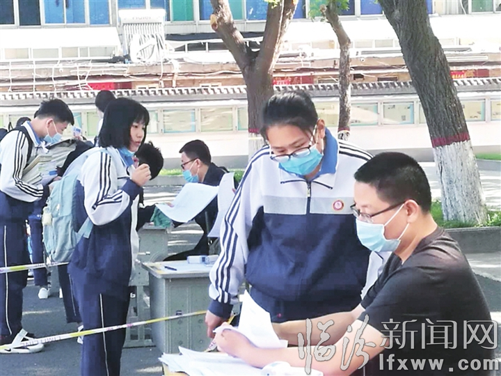 臨汾新聞網訊 5月11日,全市初中高中非畢業年級學生復學回校,笑容燦爛、自信滿滿,同學們又將書寫自己的奮進篇章。圖為山西師大實驗中學高一年級的同學們向老師交上健康登記表的情景。