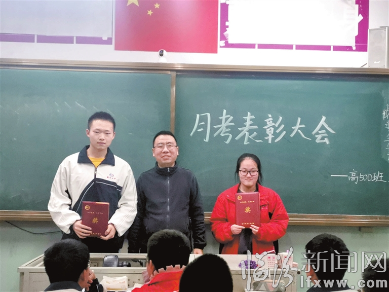賈賢峰所帶班級高一時缺乏優生,因此他很注重培優。只要發現“好苗子”,他會著重引導但并不嬌慣,該鼓勵的鼓勵,該批評的批評,且能把重點放在如何解決優生身上存在的問題。他極善于“勵志”,自己出錢對學生進行獎勵,班里爭先創優氛圍十分濃厚,高500班考出他所帶班級最好的成績。