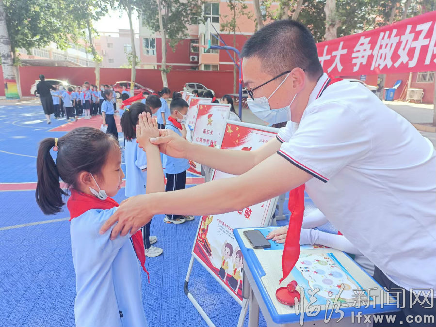 “通過闖關問答,我學到了很多少先隊知識,知道了紅領巾是紅旗的一角,是革命先烈用鮮血染成的,我們要珍愛它!”該校一(2)班學生李昱萱順利通過闖關,并參與了入隊儀式,成功系上了紅領巾。