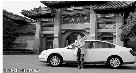 吳夢麒與自己的愛車在學(xué)校門外