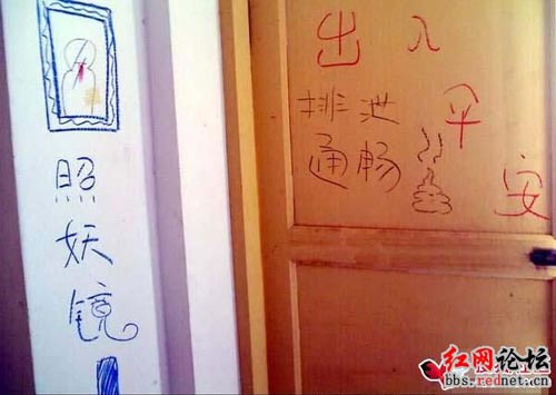 新婚快樂(lè)!天堂入口,地獄入口,照妖鏡……臨近寒假,某大學(xué)的一群女生集體在宿舍墻壁上涂鴉,創(chuàng)作了一批讓她們沾沾自喜的“杰作”。有好事者把“杰作”拍下來(lái),發(fā)到紅網(wǎng)論壇,引來(lái)上萬(wàn)網(wǎng)友回帖無(wú)數(shù)。