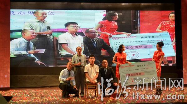 活動現場,臨汾平安人為鄉寧縣下善村無腿學子連超捐贈7000余元助學款。