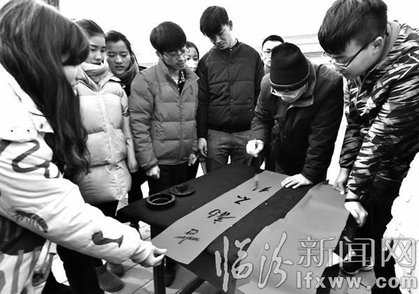 臨汾新聞網(wǎng)訊 2015年12月28日,山西師范大學(xué)書法學(xué)院在校園西側(cè)通道上開展“迎新年送春聯(lián)”主題活動(dòng),當(dāng)日共送出300余幅春聯(lián),贏得了過往師生的稱贊。 孫國芳攝