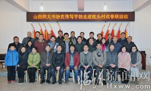 臨汾新聞網訊 2016年1月31日,農歷臘月二十二,山西師大書法家協會及克偉寫字坊的20多名書法家,受臨汾市堯都區委宣傳部的邀請,利用星期日的休息時間到堯都區枕頭鄉,開展文化下鄉,送春聯活動。活動現場書法家們揮毫潑墨,書寫了一幅幅精美的書法春聯,為當地百姓送去了新春的祝福。