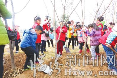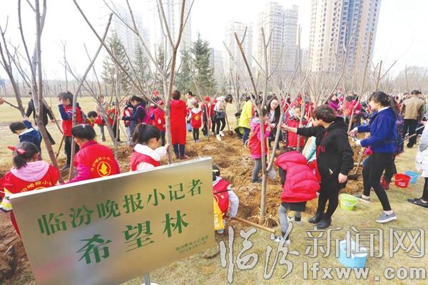 3月12日,是我國第38個植樹節(jié),為培養(yǎng)小記者們的環(huán)保意識,樹立保護生態(tài)環(huán)境的理念,臨汾晚報小記者團組織80余名小記者,去往我市美麗的澇洰河生態(tài)公園,開展“暖春愛綠,種下一棵希望樹,我與小樹共成長”為主題的植樹節(jié)親子活動。在現(xiàn)場,小記者們?yōu)闃涮钔痢⒂猛敖铀樾涿鐫菜傻亩际求w力活,卻沒有一個人喊苦喊累。