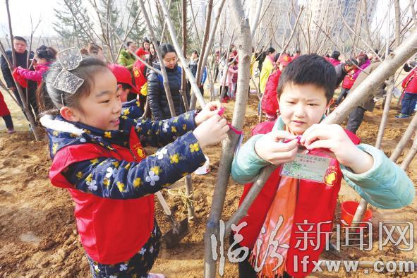 看著一棵棵種好的樹苗,小記者們紛紛和樹合影留念,并和父母約定好以后每年的植樹節(jié)都要來這里看看與他們一同成長的小樹苗。