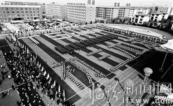 臨汾新聞網訊 近日,在臨汾同盛實驗中學運動場上,1500人組成了“初三加油”的字樣,這是該校2016年中考百日沖刺誓師大會的壯觀場面。該校初三全體學子莊嚴宣誓:百日競渡,破浪展雄風;百日拼搏,一戰定成功……決戰中考,我們必勝。”同時,家長們也在條幅上寫下了祝福鼓勵孩子們的話。 記者 孫國芳 攝
