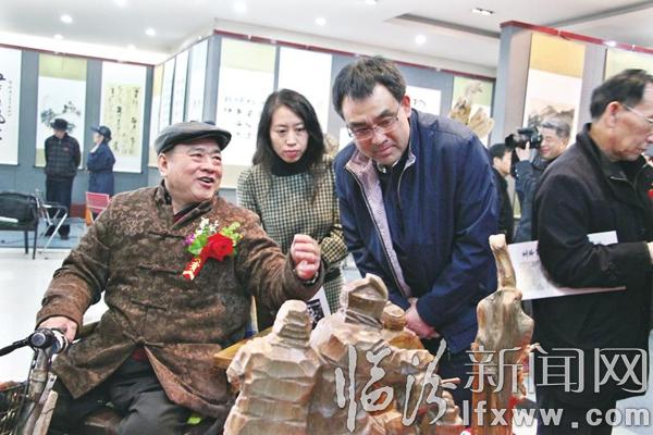 臨汾新聞網訊 3月27日,王平雕塑作品、楊年玉書畫作品展在市群藝館舉行,展出吸引了我市廣大書畫、雕塑文藝愛好者,大家在作品前仔細觀摩、拍照留念、溝通交流。據悉,此次展出為期10天,王平的泥塑、根雕、銅鑄等作品共計70余件;楊年玉書畫作品30余幅,百余幅(件)作品為市民奉上一道饕餮視覺盛宴。記者 盧婷 攝