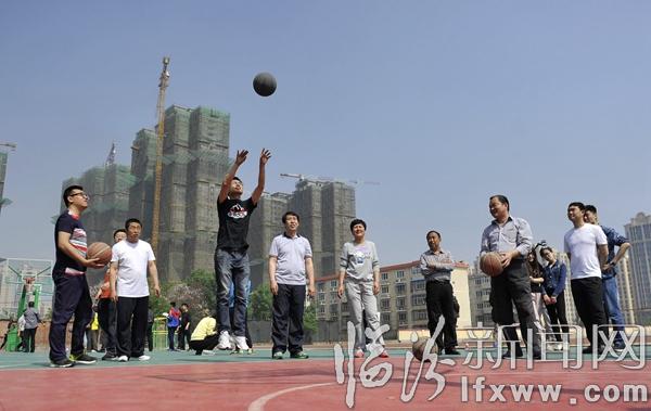 臨汾新聞網訊 4月28日,在臨汾宜穎陽光青少年俱樂部,臨汾市文化局的工作人人員在進行投籃大賽。當日,臨汾市文化局舉辦了主題為“強健體魄,陽光生活”迎五一趣味運動會,通過齊心協力跑、定向投籃、羽毛球等10個比賽項目的角逐,以實際行動倡導全民健身運動的蓬勃發展。 記者 閆銳鵬