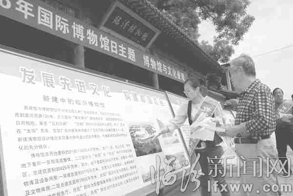 活動現場已將新建的臨汾博物館的最新動態展示出來。目前,該館已建成,坐落于汾河公園九州廣場南端,東距汾河河堤100米,西到濱河西路120米,博物館正立面與“堯天舜日”牌坊相呼應。而新博物館設計理念來自襄汾陶寺遺址的古觀象臺,表現了建筑物與臨汾傳統文化的完美結合。