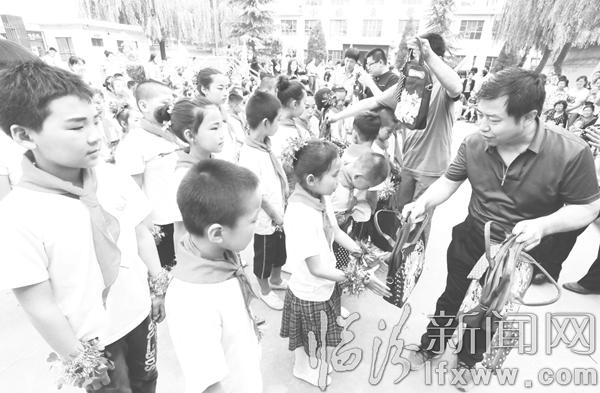 5月31日,堯都區(qū)發(fā)改局、民政局及新世紀(jì)汽車裝飾有限公司的工作人員來到堯都區(qū)金殿鎮(zhèn)小榆東村中心小學(xué),為23名留守兒童送來了書包、課外讀物、羽毛球拍、籃球等文體用品,與孩子們一起慶祝六一兒童節(jié)。