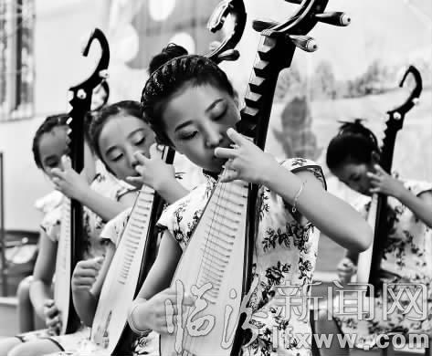 臨汾新聞網訊 6月1日上午,市第二小學舉辦“六一”文藝匯演活動。圖為孩子們在彈奏琵琶。