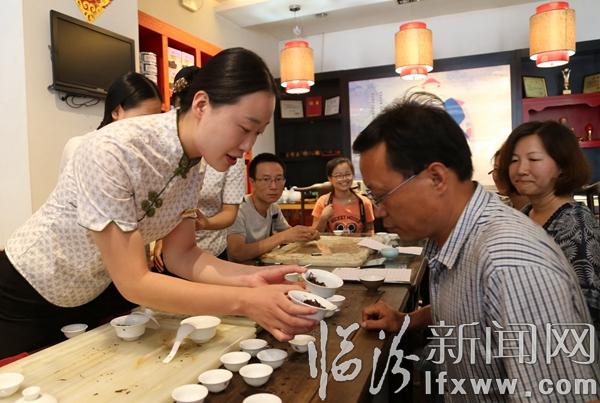 臨汾新聞網(wǎng)訊 6月25日,在我市日春茶業(yè),工作人員在為茶藝愛好者講解茶葉的品質(zhì)。當日,日春茶業(yè)舉辦的主題為“夏日品茗,茶王爭艷”茶王賽吸引了我市茶藝愛好者前來品茶,活動現(xiàn)場,主辦方通過紅茶、綠茶、烏龍茶以及普洱茶等茶系的現(xiàn)場泡茶、品茶、鑒茶等環(huán)節(jié),搭建一個分享學(xué)習(xí)平臺,讓更多的市民和愛茶之人,了解高質(zhì)量的好茶,掌握辨別茶葉品質(zhì)的知識,傳播傳統(tǒng)文化知識,促進我市茶文化的健康和諧發(fā)展。 記者 閆銳鵬 攝