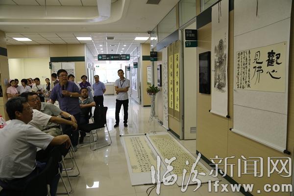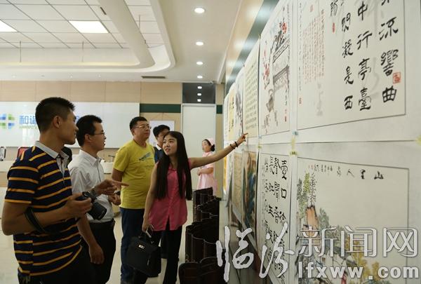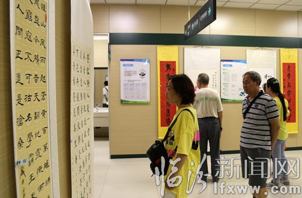 臨汾新聞網訊 6月25日,在我市“和諧杯”書畫大賽上,書畫愛好者在觀看書畫展。當日,臨汾和諧體檢中心首屆書畫大賽舉辦,共征集各界書畫愛好者以及工作人員書畫作品150余幅,作品以“大美臨汾”為主題,以風格迥異、筆法獨特的作品充分展現出大家對生活的熱愛、家鄉的贊美。這次比賽不僅活躍了職工文化生活,也為書畫愛好者搭建了一個展示自我、提升自我的舞臺。記者 閆銳鵬 攝