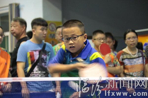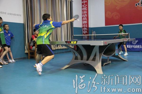 臨汾新聞網訊 7月9日,在我市星辰乒乓球俱樂部,三川乒乓球隊的隊員在比賽中發球。當日,我市2016年“星辰杯”少兒乒乓球邀請賽舉辦,旨在進一步加強全市少兒乒乓球梯隊建設,提高后備人才的競技水平,發現更多的青少年乒乓球人才。 記者 閆銳鵬 攝
