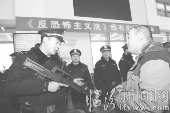 臨汾新聞網訊 近日,臨汾鐵路公安處在臨汾西站舉行了“反恐防暴、人人有責、平安之路、溫馨春運”反恐宣傳活動。活動通過設置咨詢臺、發放宣傳資料、執法執勤裝備以及各類警用槍支展示等多種形式,向大家講解反恐防范基本常識,進一步提高旅客反恐防恐意識和應對恐怖襲擊的能力。(楊李林)