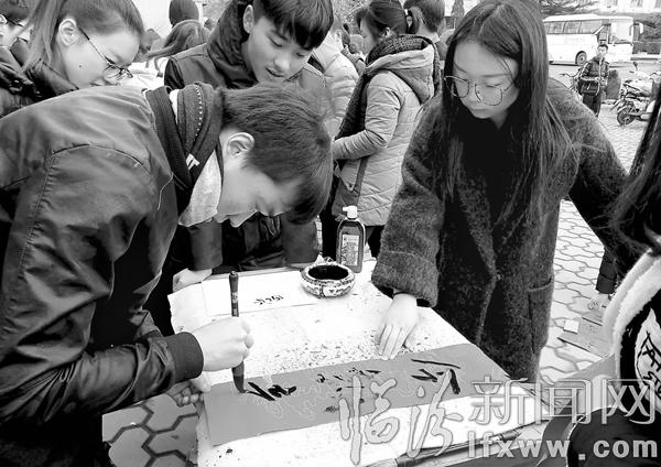 臨汾新聞網訊 近日,山西師范大學書法學院學生們在校內外舉辦了“迎新春,送春聯”活動。此次活動旨在弘揚了中國傳統文化藝術,傳承歷史文化內涵,展示書法藝術魅力,繁榮書法藝術。 饒二保 趙嘉麗 攝