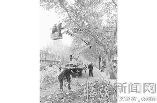 臨汾新聞網訊 隨著氣溫降低,我市園林綠化植物逐步由生長期轉入休眠期。1月10日,市園林事業局城市綠化大隊抓住樹木修剪最佳時期,全面有序開展了冬季樹木修剪工作。此次樹木修剪進一步提升了園林植物的自然美、和諧美,與周邊景觀更協調,達到了應景入畫的效果。圖為綠化大隊工作人員正在迎春北街對景觀樹進行修剪。