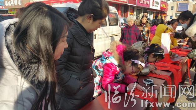 活動當天雖然天氣寒冷,但5名小小書法家心里卻是熱的,他們連續寫了一個多小時,手腳凍僵了,臉蛋沾上紅紙色和墨色,但依然堅持寫春聯。