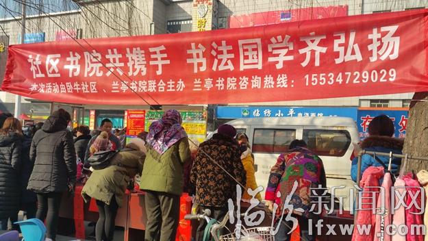 當天上午,蘭亭書院的師生向臥牛社區居民及過往百姓義務書寫春聯近百幅,其中有楷書、篆書和行書、草書,學生寫的春聯被一搶而光。