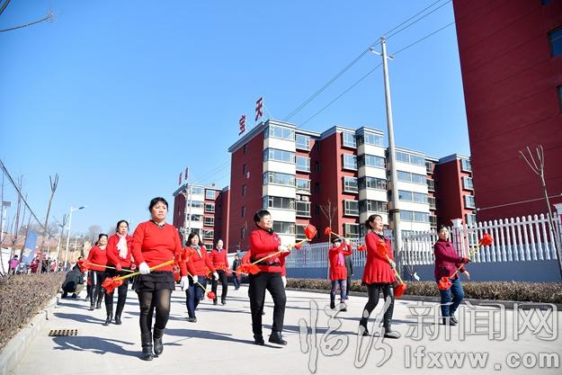 臨汾新聞網訊 歡快的秧歌扭起來,愉悅的鼓點敲起來,眾人劃槳開大船。2月9日,農歷正月十三,在省級美麗宜居示范村――襄汾縣新城鎮鄧曲村新建成的天寶家園小區前,人們歡歌笑語、鼓聲陣陣,為即將到來的春節文藝匯演準備著、忙碌著。“過去一年,我們村里蓋起了高樓、用上了天然氣、接上了大暖,我們的日子一天比一天紅火熱鬧,過上了和城里一樣的生活,這舞跳得歡快、這鼓敲得起勁兒、這旱船劃得暢快。”聊起過去一年的變化,村民們津津樂道。