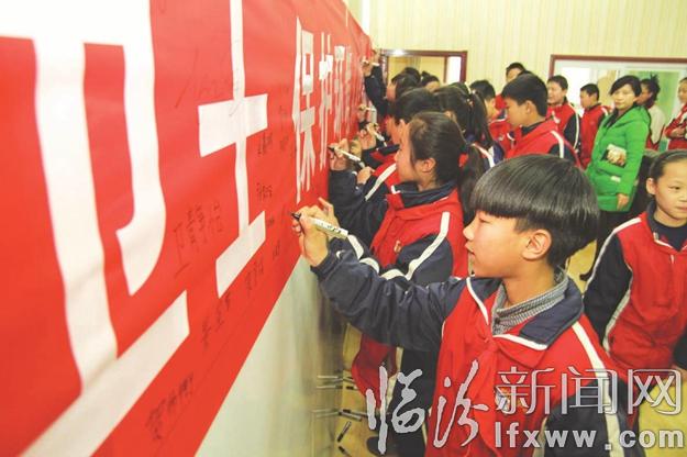 簽下自己的名字,六年級(jí)學(xué)生查晉宇堅(jiān)定地說(shuō):“我一定監(jiān)督身邊人,做環(huán)境的保護(hù)者。”
