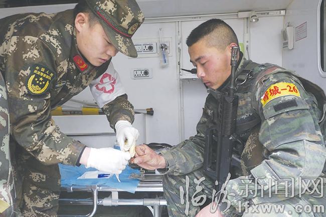 “你明天不能再參加比賽,更不允許攀爬大繩?!贬t(yī)療組石佳這樣囑咐晉城戰(zhàn)隊(duì)特戰(zhàn)隊(duì)員柴震。原來,柴震在訓(xùn)練中,右手無名指被擠壓,導(dǎo)致指甲位置紅腫化膿。