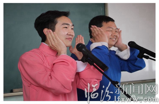 相聲老師和大家的一塊互動,讓學生們都樂開了花。