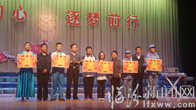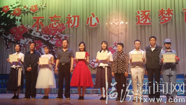 臨汾一中“高舉愛國旗幟 傳唱紅色經典”大合唱比賽頒獎現場