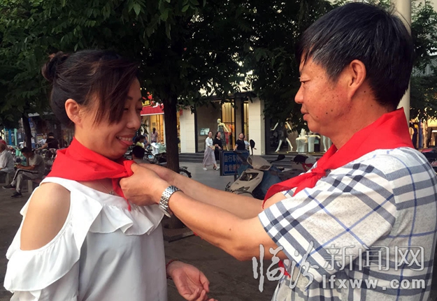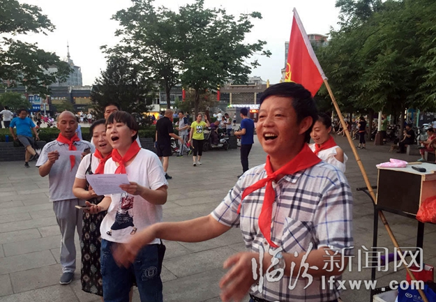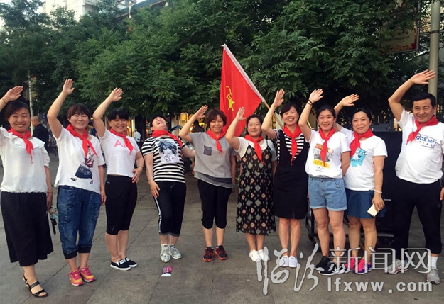 臨汾新聞網(wǎng)訊 昨天是六一兒童節(jié),山西省臨汾市鼓樓廣場(chǎng)上,一群阿姨大媽們,打著少先隊(duì)隊(duì)旗,系上紅領(lǐng)巾,莊嚴(yán)地宣誓,加入少先隊(duì),重溫兒時(shí)的感覺(jué)。