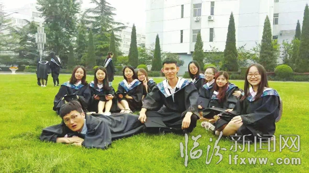 今年的5月23日,正好是鐘佳華在洛陽師范學院班畢業答辯的日子,學校也是臨時通知他們照畢業照,他們班在答辯前急急忙忙照了畢業照,因為老師們和校領導都在答辯現場,所以后期把老師和校領導的照片合成到了他們的畢業照上。“等照片發下來的時候,同學們突然發現輔導員仝老師(男),頭上突然多了一縷女生的黃頭發,讓平時比較嚴肅的仝老師尷尬地笑了一次。”鐘佳華說,這次畢業照,也有一點小遺憾,就是好伙伴張瑜在北京實習,第二次缺席畢業照。