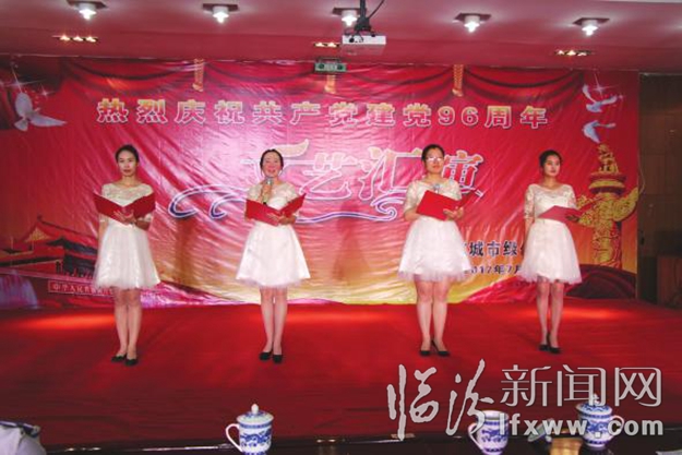 臨汾新聞網(wǎng)訊 6月27日,臨汾市城市綠化一隊(duì)舉辦了慶祝中國共產(chǎn)黨建黨96周年文藝匯演,全體職工以飽滿的熱情,唱出了綠化人的心聲,展示了綠化人的風(fēng)采,表達(dá)了對黨的忠誠。