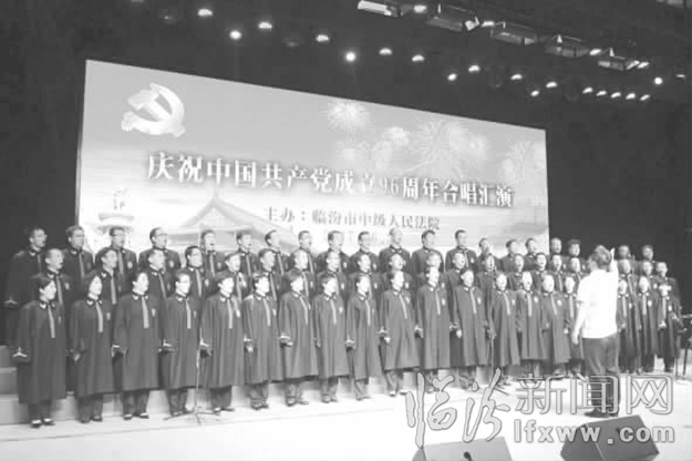 臨汾新聞網訊 6月28日,臨汾市中級人民法院舉行文藝匯演,296名干警和職工組成12個合唱團隊放聲高歌,慶祝中國共產黨成立96周年。