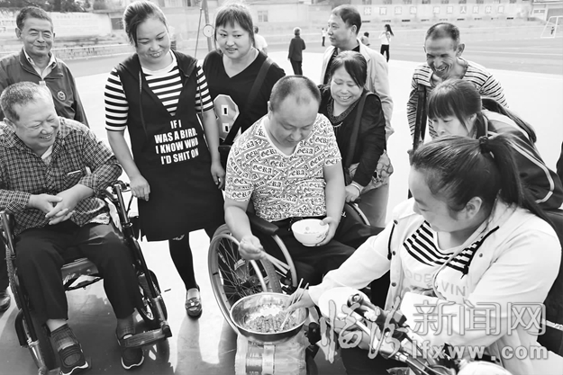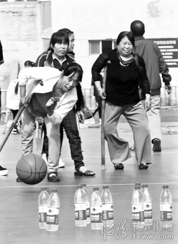 臨汾新聞網訊9月1日,在市體育場,近百名殘疾人在這里參加市殘聯舉辦的趣味運動會。運動項目豐富多彩,有定點投籃、飛鏢、簡易保齡球等比賽,大家在歡快的比賽中增進了友誼,鍛煉了身體。左圖為筷子夾玻璃球趣味運動,右圖為籃球砸礦泉水瓶趣味運動。(張旦)