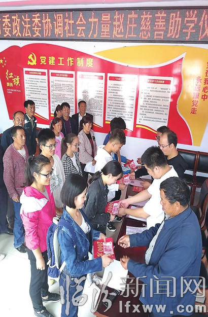 臨汾新聞網訊 9月4日,市委政法委駐村工作隊和駐村“第一書記”多方協調社會力量籌集48000元,為鄉寧縣關王廟張莊村考上研究生、大專和中專的22名學生進行愛心捐助。學生代表趙麗蓉感激地說:感謝市委政法委,感謝你們在困難時刻,為我們協調助學資金,我們一定銘記這份恩情,將來學有所成,回報社會、回報家鄉,讓更多的人實現自己的夢想。”家長代表也表示要加倍努力勞動,靠自己的智慧和勤動加快脫貧步伐。