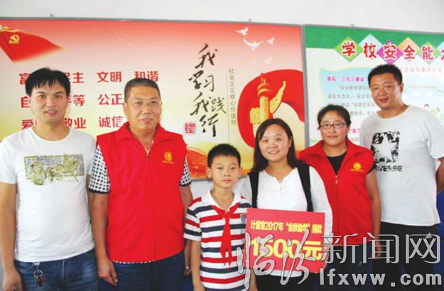 工作人員為該學(xué)生送上助學(xué)金,鼓勵(lì)他好好學(xué)習(xí),早日成為棟梁之才,回報(bào)社會(huì)。