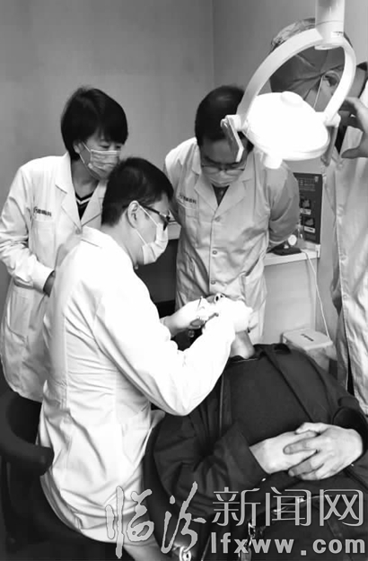臨汾新聞網(wǎng)訊 近日,臨汾建峰齒科醫(yī)院特邀西安第四軍醫(yī)大口腔醫(yī)院的專家團(tuán)隊(duì)來(lái)我市坐診。在為期兩天的時(shí)間里,專家團(tuán)隊(duì)為每一名患者進(jìn)行認(rèn)真診斷,拿出治療方案。圖為專家組為我市患者進(jìn)行牙齦修整術(shù)。