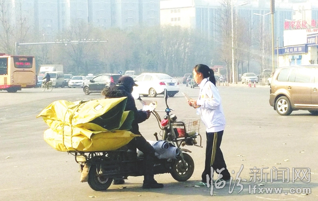 隨后,同學們兵分五路,來到鼓樓南北街的五個十字路口做起了交通安全勸導員。他們趁著行人、自行車、電動車等紅燈期間,給市民發放交通安全宣傳頁,并及時勸阻一些闖紅燈的市民,呼吁大家安全文明出行。