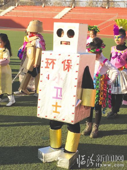 孔雀的尾巴是用廢舊的一次性紙盤做的,腰間設計為廢舊蛋糕盒,裙擺處以輕紗為點綴。”三(4)班張繼元同學說,“參加此次活動既能促進家人之間的感情,又提高了我的動手能力,讓我學會發(fā)現(xiàn)生活中的美,在以后的生活中重視對廢舊物品的回收再利用。”“你好,我是臨汾晚報小記者關博元,我能問你一個問題嗎?”臨汾晚報小記者穿梭于展示隊伍中,積極采訪,仔細詢問每一位參加活動展示的同學。