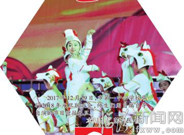 2017年12月29日日,市第一中心學(xué)校舉行2018年元旦聯(lián)歡會(huì),師生們用自編自導(dǎo)自演的節(jié)目迎接元旦。