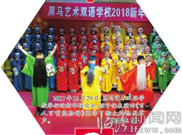 2017年12月29日,黑馬藝術(shù)雙語(yǔ)學(xué)校舉行迎新年聯(lián)歡會(huì),孩子們表演的《百人百嘴亮臉譜》贏得了觀眾的熱烈掌聲。