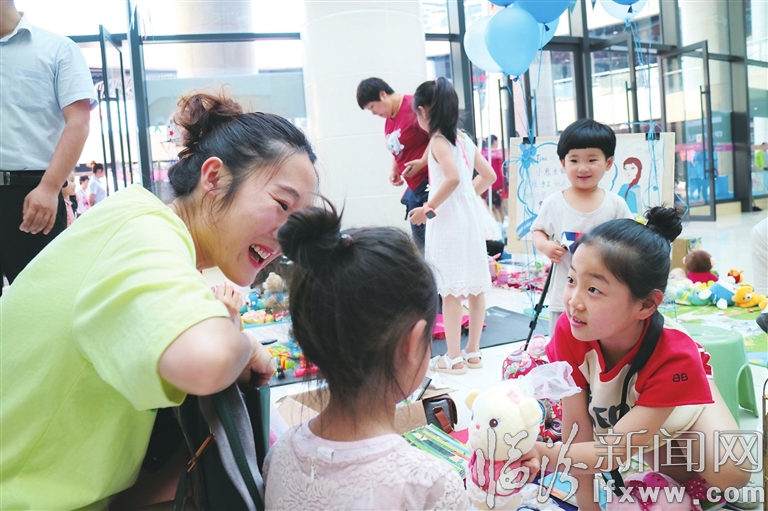 臨汾新聞網(wǎng)訊 “六一”兒童節(jié)期間,萊福士教育CTP美華少兒英語在五洲國際廣場舉辦了一場別開生面的兒童跳蚤市場活動(dòng)。小朋友們把閑置玩具、課外讀物、手工作品等拿來銷售,并制作了特色精美展板裝飾攤點(diǎn)。活動(dòng)現(xiàn)場熱鬧非凡,小朋友們用自己真摯的心愿吸引顧客,熱情推銷,也收獲了自己心怡的物品。圖為景意然(右一)在推銷玩具。(于芳 攝)