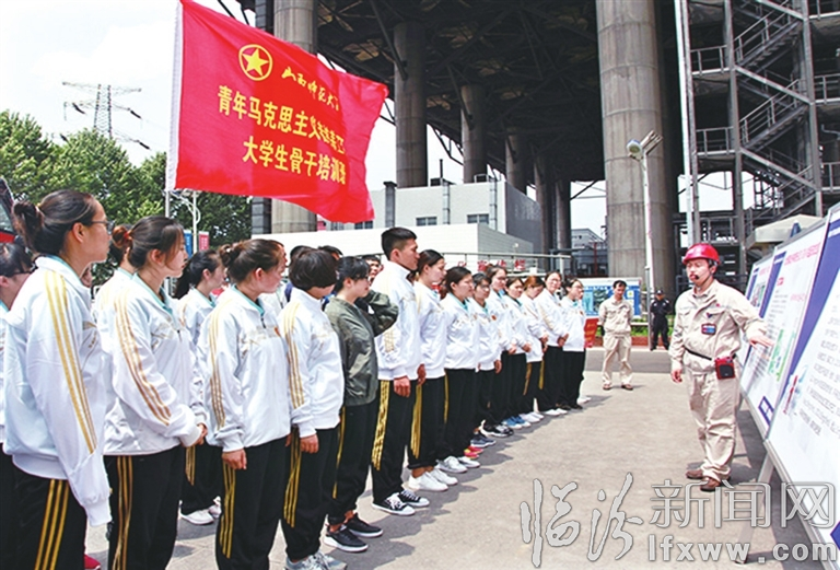 臨汾新聞網(wǎng)訊 7月13日上午,為增進(jìn)校企聯(lián)系、展示企業(yè)形象,大唐國(guó)際臨汾熱電公司舉辦了以“提供清潔電力、點(diǎn)亮美好生活”為主題的企業(yè)開(kāi)放日活動(dòng)。225名來(lái)自山西師范大學(xué)2018年各院系不同年級(jí)、不同專業(yè)的“青年馬克思主義者培養(yǎng)工程”培訓(xùn)班的學(xué)員們參加了本次活動(dòng),實(shí)地了解電力生產(chǎn)知識(shí)。山西師范大學(xué)校團(tuán)委將一面印著“傾情服務(wù)展風(fēng)采、校企聯(lián)袂育英才”的錦旗贈(zèng)予該公司。