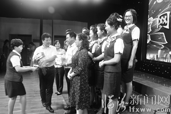臨汾新聞網訊 9月16日,農行臨汾分行舉辦網點風采大賽,來自全市農行系統的18個支行網點代表隊參加了比賽。各參賽隊圍繞“凝聚團隊力量、展現團隊風采”的主題,以歌舞、快板、沙畫、情景劇等多種形式,展示了農行開展網點效能建設所取得的成果,展現了農行員工飽滿的精神狀態和良好的工作作風。通過激烈的角逐,最后,平陽支行代表隊獲得了第一名。圖為頒獎現場。